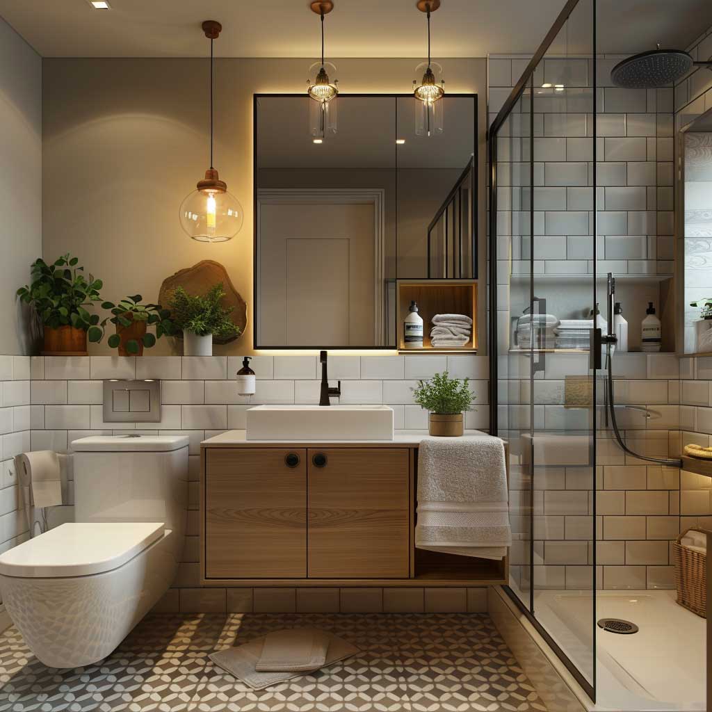 Enhance brightness and ambiance with LED mirrors, modern lighting, and efficient ventilation systems for a safer, more comfortable bathroom environment.